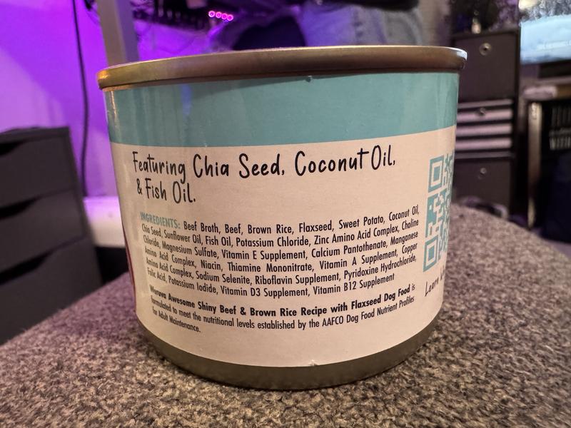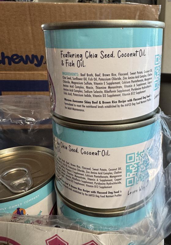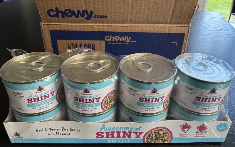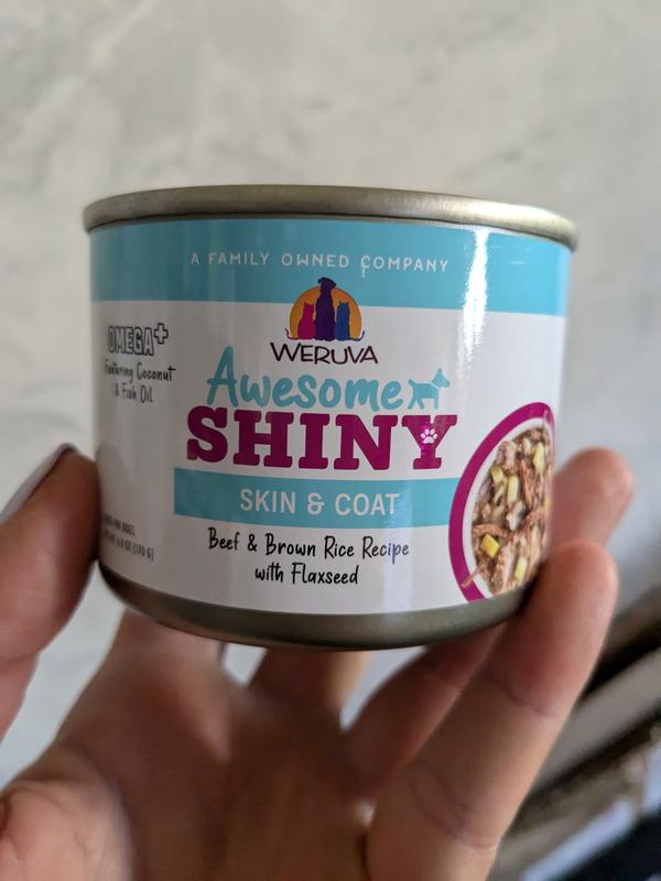 Weruva Awesome Shiny, Beef & Brown Rice Recipe with Flaxseed Adult Gluten-Free Shredded Canned Wet Dog Food, 6-oz can, case of 8
