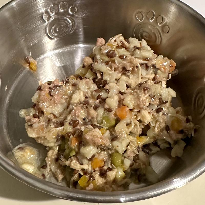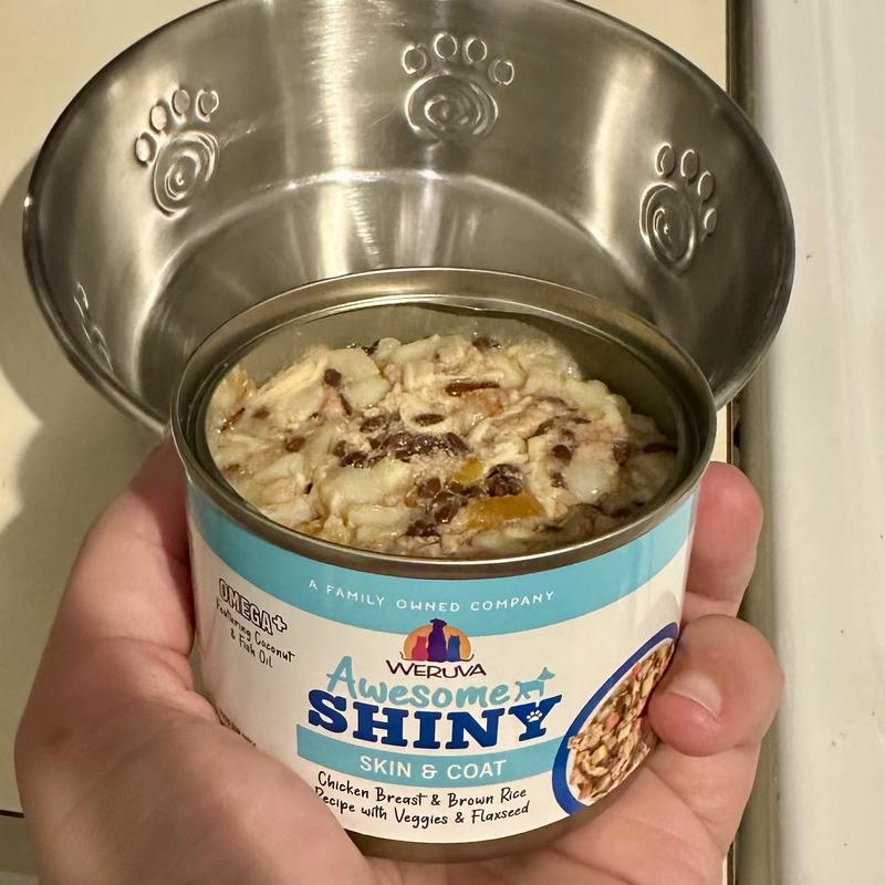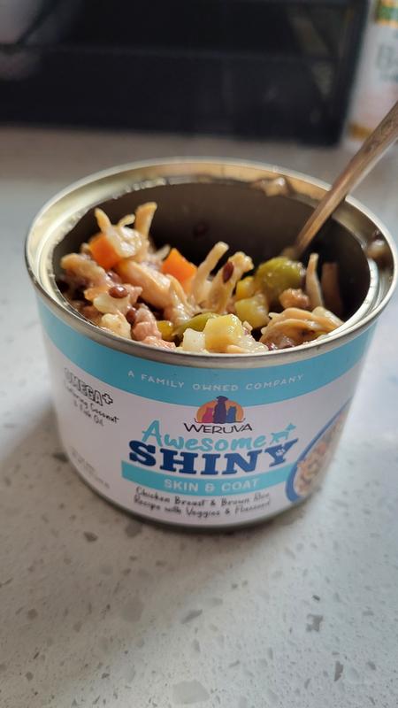 Weruva Awesome Shiny, Chicken Breast & Brown Rice Recipe with Veggies & Flaxseed Adult Gluten-Free Shredded Canned Wet Dog Food, 14-oz can, case of 10