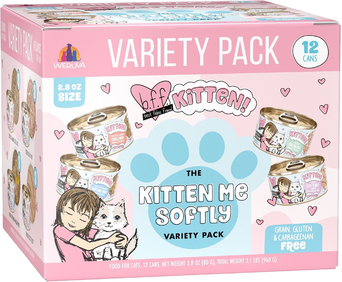 BFF Kitten Softly Chicken, Tuna & Salmon Variety Pack Grain-Free Shredded Wet Cat Food, 2.8-oz can, case of 12