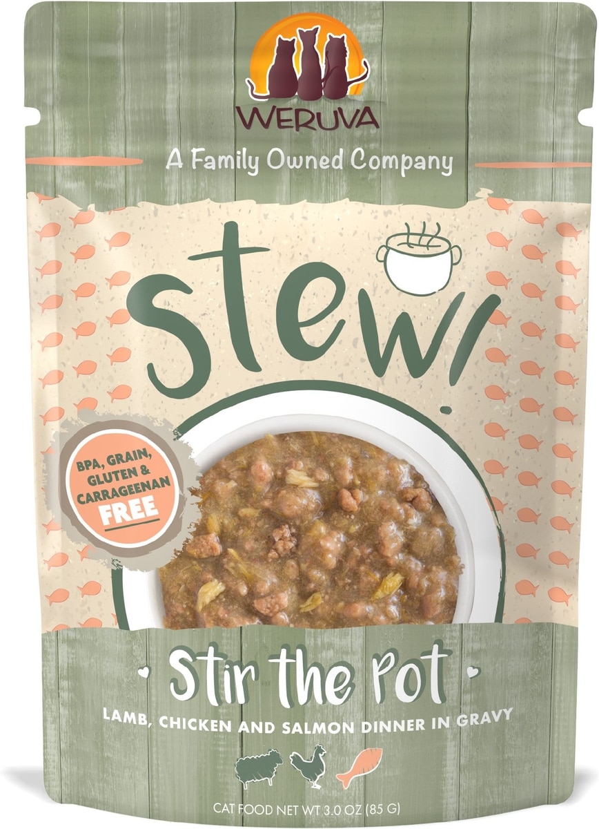 Weruva Classic Cat Stir the Pot with Lamb, Chicken & Salmon in Gravy Stew Cat Food Pouches, 3-oz pouch, 12 count