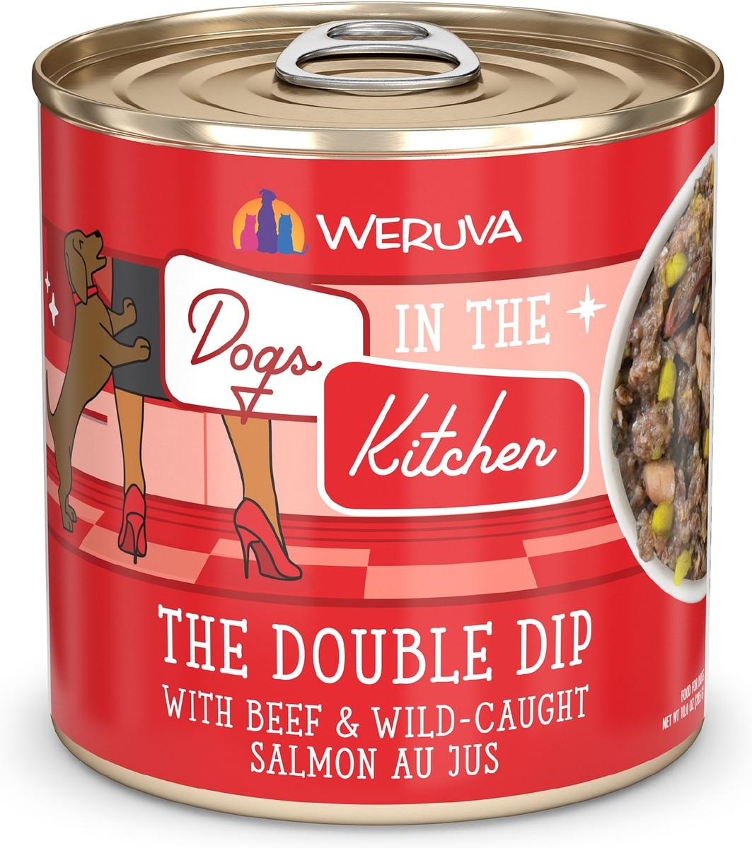 Weruva Dogs in the Kitchen The Double Dip with Beef & Wild Caught Salmon Au Jus Grain-Free Canned Dog Food, 10-oz can, 12 count