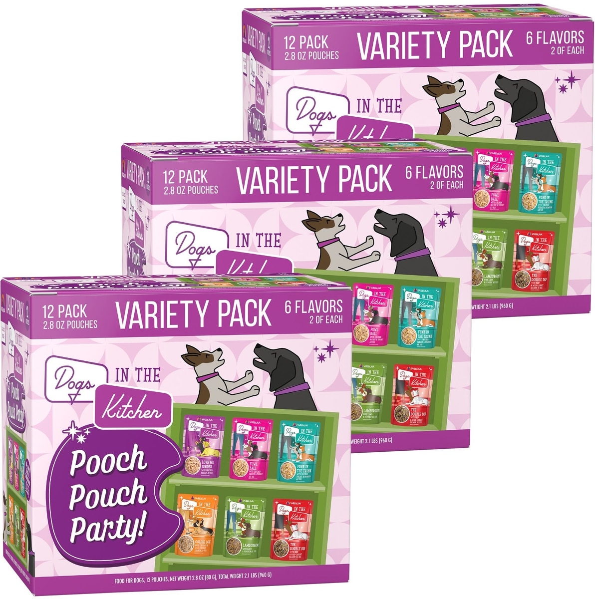 Weruva Dogs in the Kitchen Pooch Pouch Party! Variety Pack Grain-Free Dog Food Pouches, 2.8-oz pouch, bundle of 36