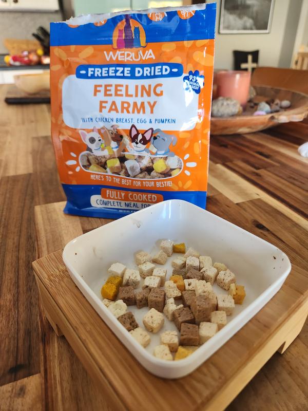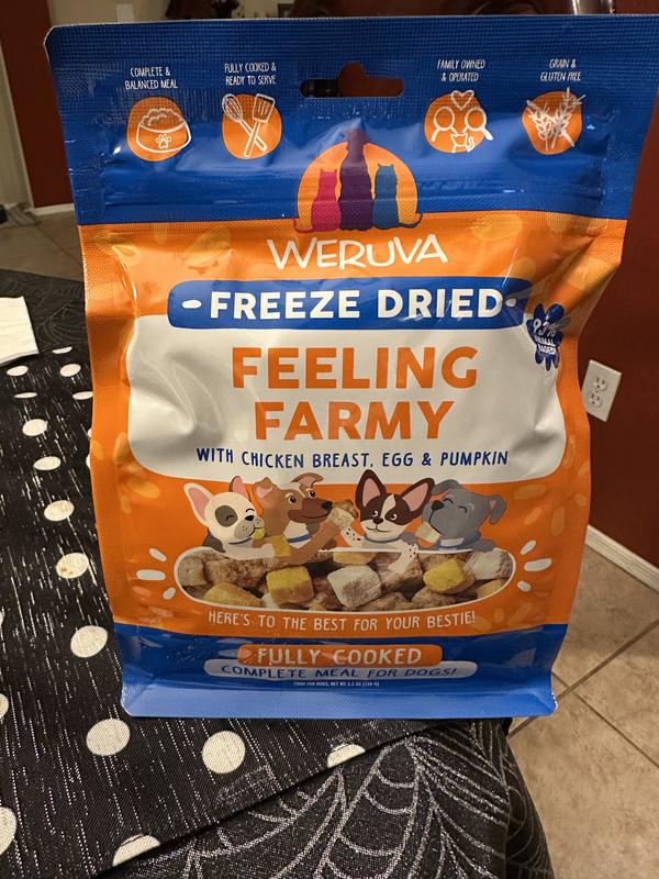 Fully Cooked for Safe Handling Weruva Freeze Dried food delivers the perfect balance of nutrition, convenience, and flavor. Fully cooked for safe handling, with real ingredients you can see, it can be left out overnight without worrying about spoilage—ideal for dogs who prefer to graze.