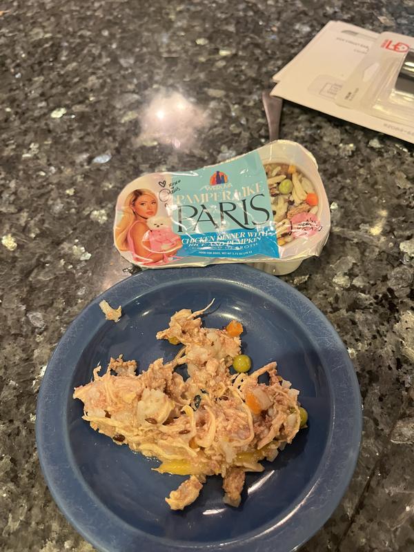 - DealPamper Like Paris Variety Pack Non-GMO Chicken Dinner Shredded Wet Dog Food, 2.75-oz cup, case of 10$22.89 Chewy Price$22.90 List Price$21.75 Autoship PricePromo, Spend $100, Get $30 eGift Card with code NEWYEAR +1 deal