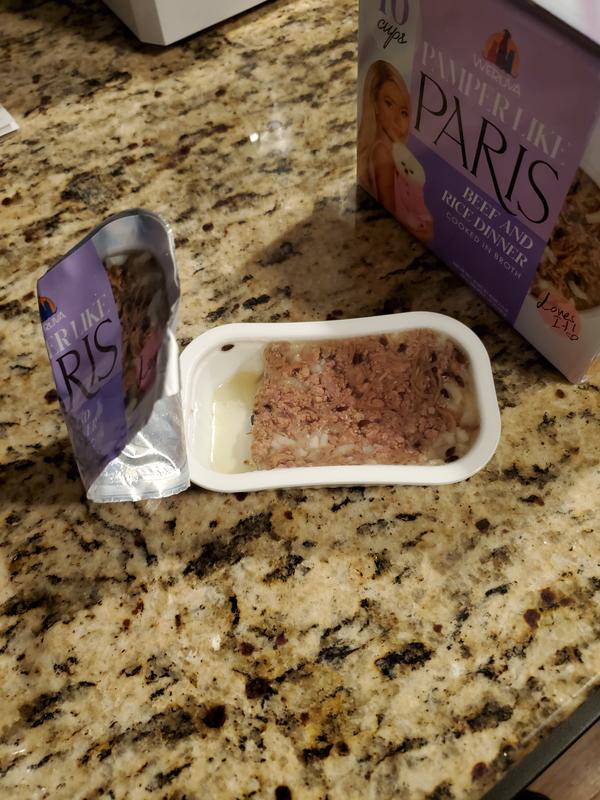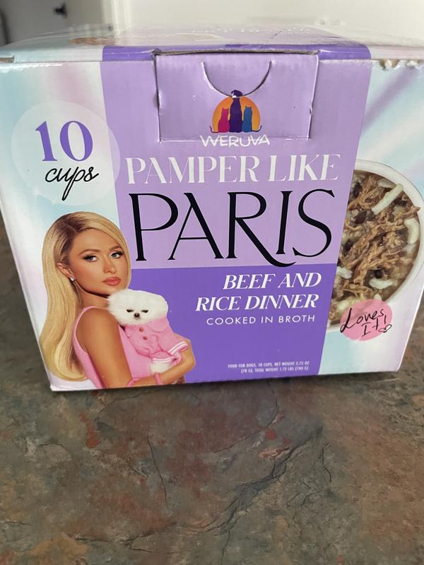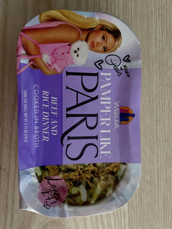 Pamper Like Paris Non-GMO Beef & Rice Dinner Shredded Wet Dog Food, 2.75-oz cup, case of 10