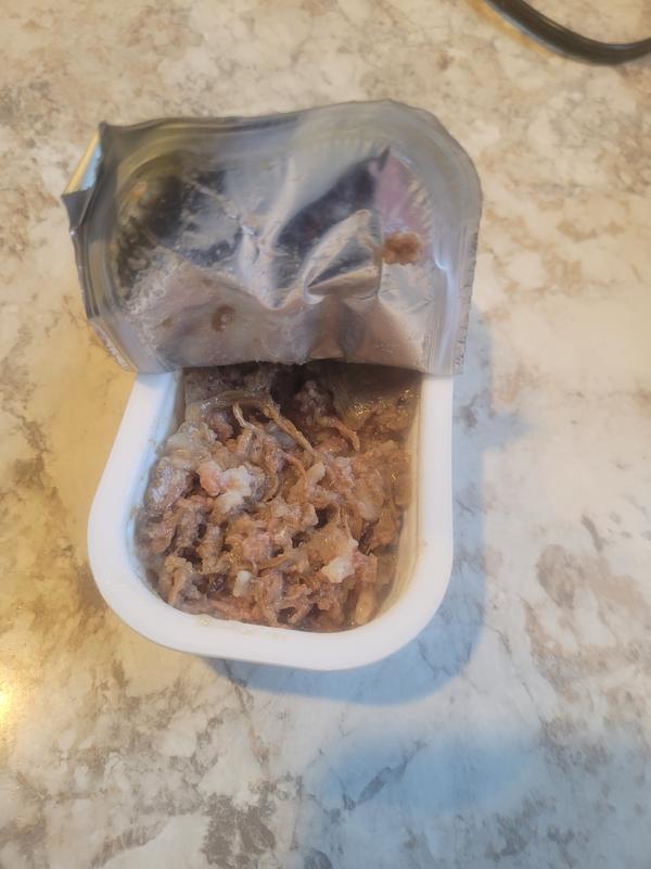 Great for my tiny pups!! It’s hard to describe the texture, it’s like a chunky pate. My littles gobbled it right up and I used it as a topper for their regular kibble. I love the packaging and the small meal size.