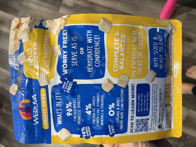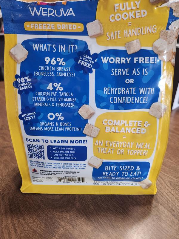 Fully Cooked for Safe Handling Weruva Freeze Dried food delivers the perfect balance of nutrition, convenience, and flavor. Fully cooked for safe handling, with real ingredients you can see, it can be left out overnight without worrying about spoilage—ideal for dogs who prefer to graze.