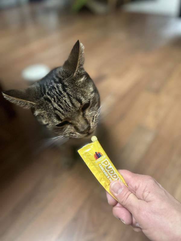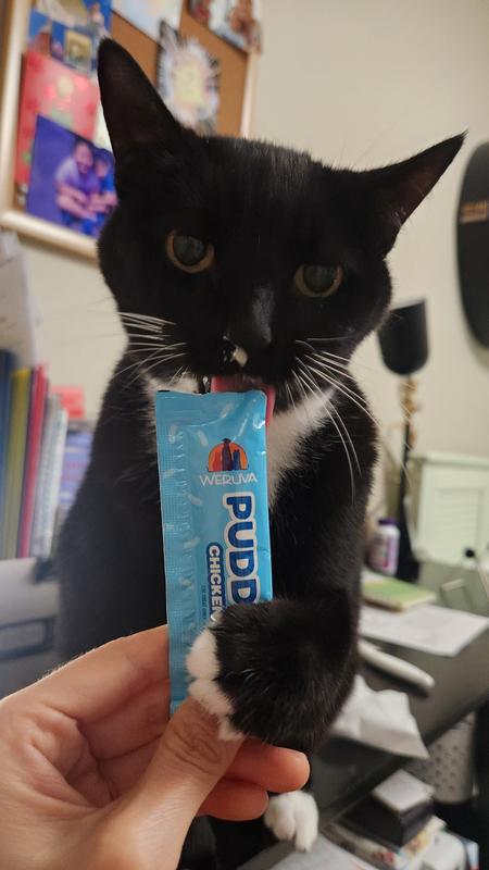 Leon is in love with these Weruva Puddy Pops as you can see. He will sit at the treat cabinet like he is being starved. I like that the ingredients are minimal,