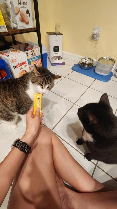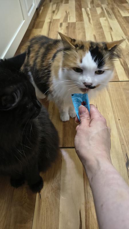 My two kitties were not a fan of these treats. I believe they liked the smell and flavor of the Tuna & Salmon but the consistency was off. I tried to give it to them directly from the tube and they took a few licks then walked away. I also tried it as a topper in their food and avoided their dish. The consistency is more applesauce texture, not creamy or liquid.