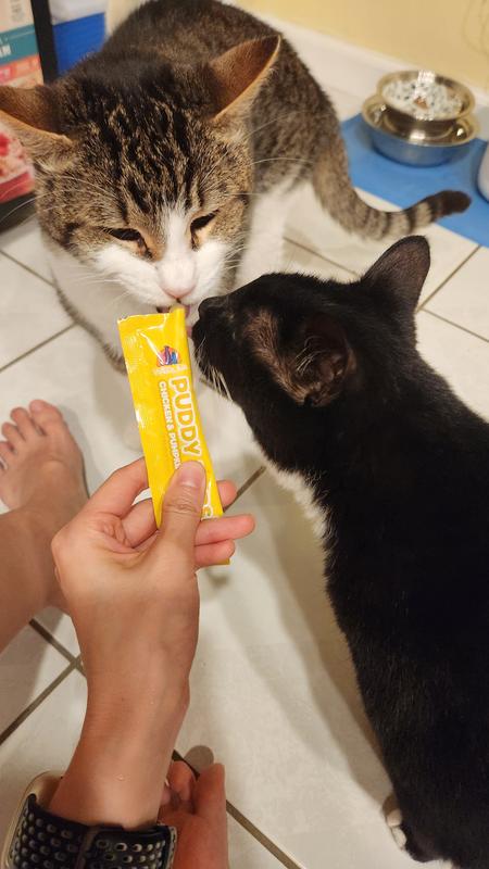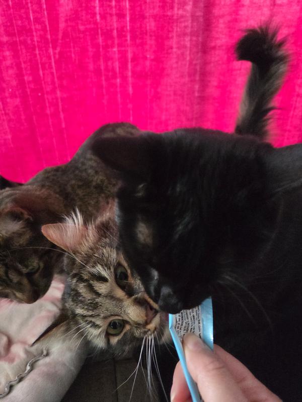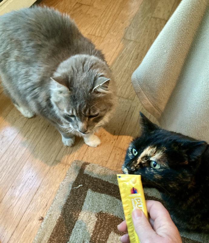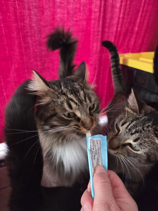 My cats and I are in love with these Puddy Pops, in different ways, lol. They enjoy their little treats. I got my Momo, who hates brushing, to stay still and allow me to brush her. Win-win!!! Happy cats here.