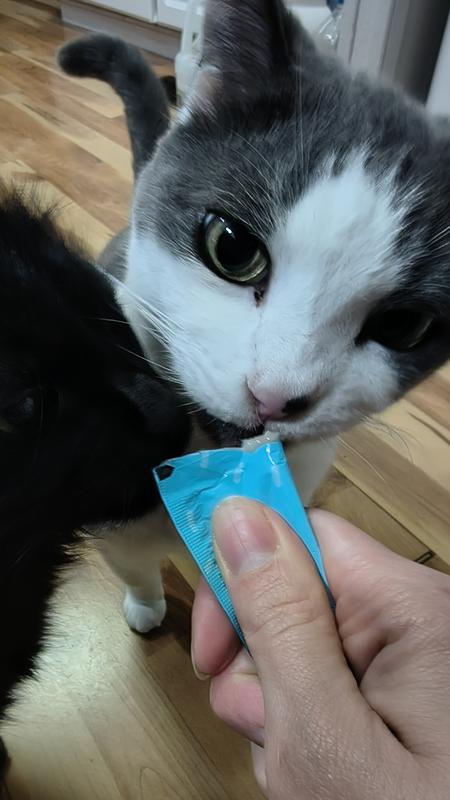 My cats both went crazy for this treat! I have senior kitties and one has a sensitive stomach so I'm always a bit nervous introducing new foods to her. She ate it