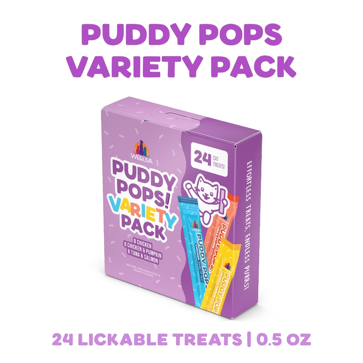 Weruva Puddy Pops Variety Pack Lickable Cat Treat, 24 count