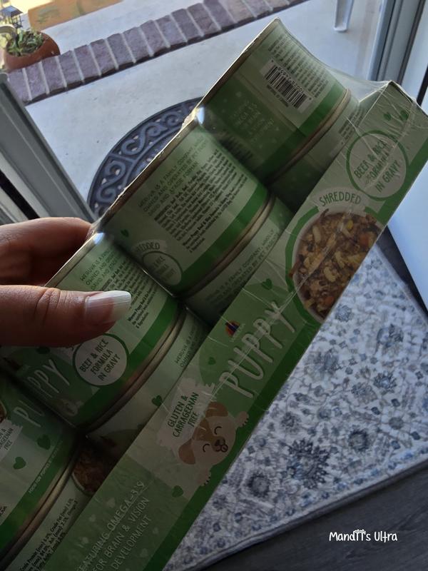 Available in small cans to start and bigger cans as your puppy grows and grows! Produced in human food facilities under the Strictest B.R.C. Global Standards for Foods, with real ingredients you can see in every recipe.
