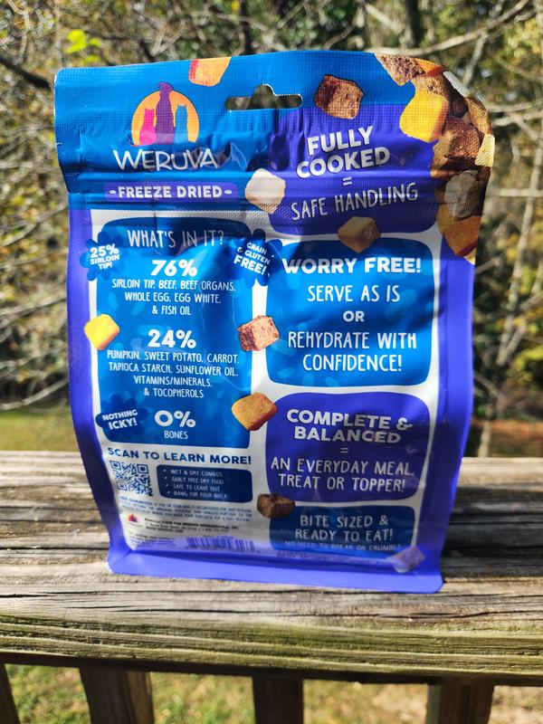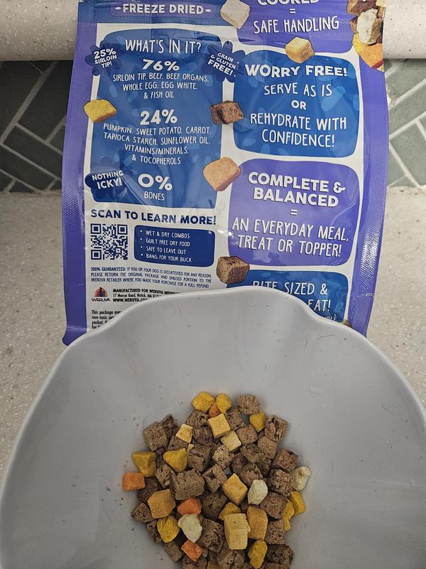 Fully Cooked for Safe Handling Weruva Freeze Dried food delivers the perfect balance of nutrition, convenience, and flavor. Fully cooked for safe handling, with real ingredients you can see, it can be left out overnight without worrying about spoilage—ideal for dogs who prefer to graze.
