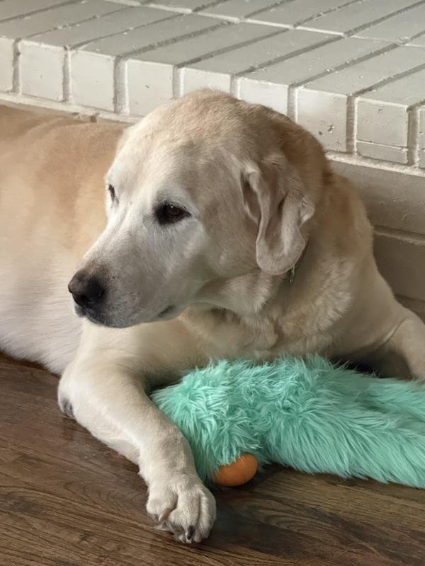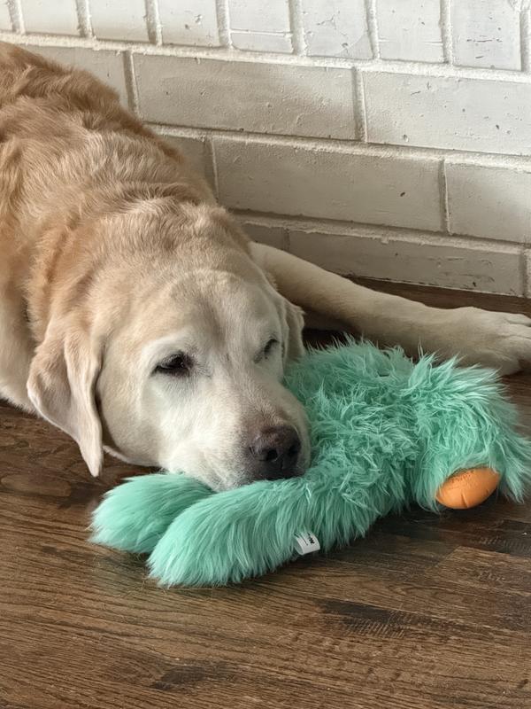 My big dog loves it! And it’s lasted a long time. We’ve had this toy a couple weeks now and other than some yellow fuzz around the house, it’s actually stayed fully intact. No inside stuffing everywhere no parts broken off. We play rough with this thine everyday and it still squeaks and has all its limbs! I love that it’s so tough but, still soft and fuzzy.