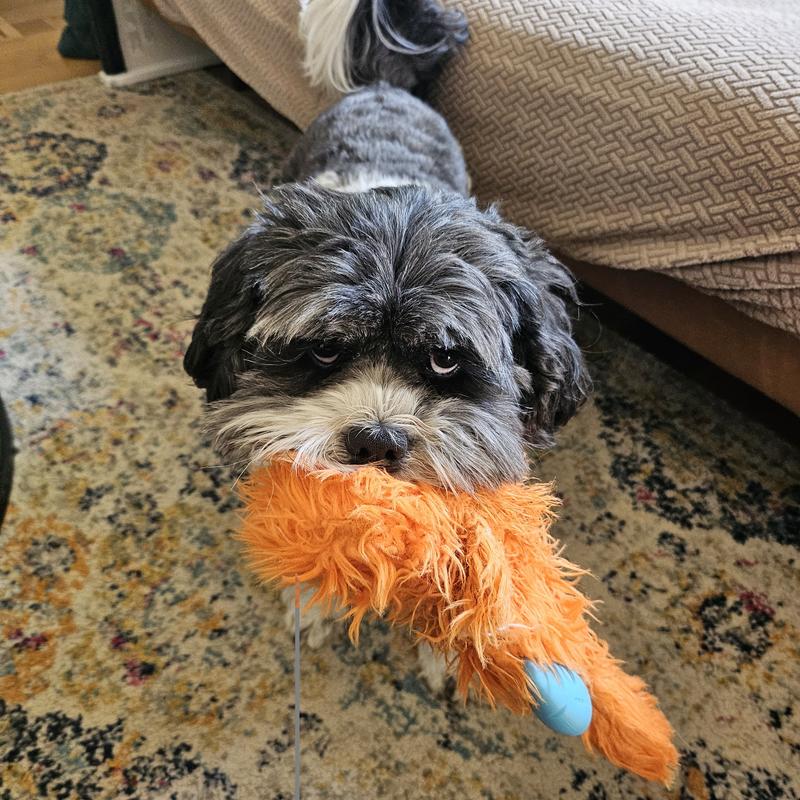 My Labrador Retriever loves his little fluffy funny furry friend! He carries “Baba Yaga” everywhere he goes. It’s made of good quality material to withstand the playtime & the drool. 🩷