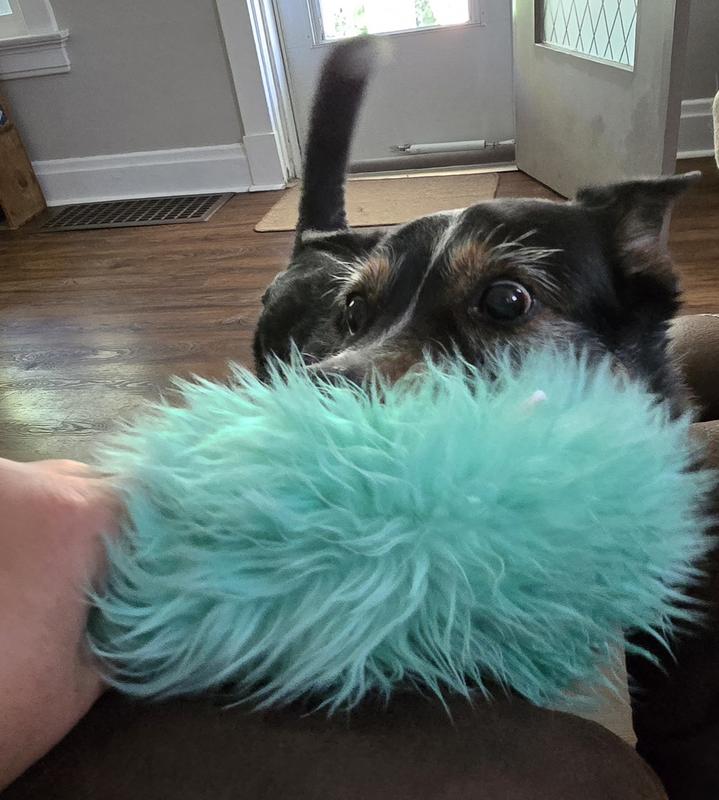 Another funny unstuffed stuffy!! My dogs went nuts for this - I'm sorry I only had one - so it got put away. But they each loved throwing it in the air and rubbing all over it.....we did love a rubber hand on the toy but in fairness I have big dogs that are pretty hard on their toys so it tracks. I like that it was soft and the fur on the toy didn't pull out so easily - I think our squeaker may be been broken with the first chomp but they loved it...my granddaughter (1) did too!