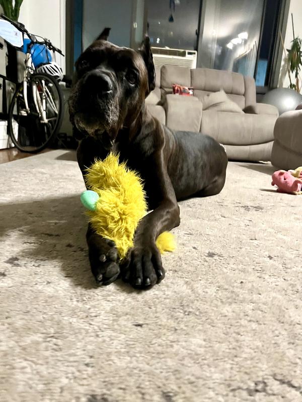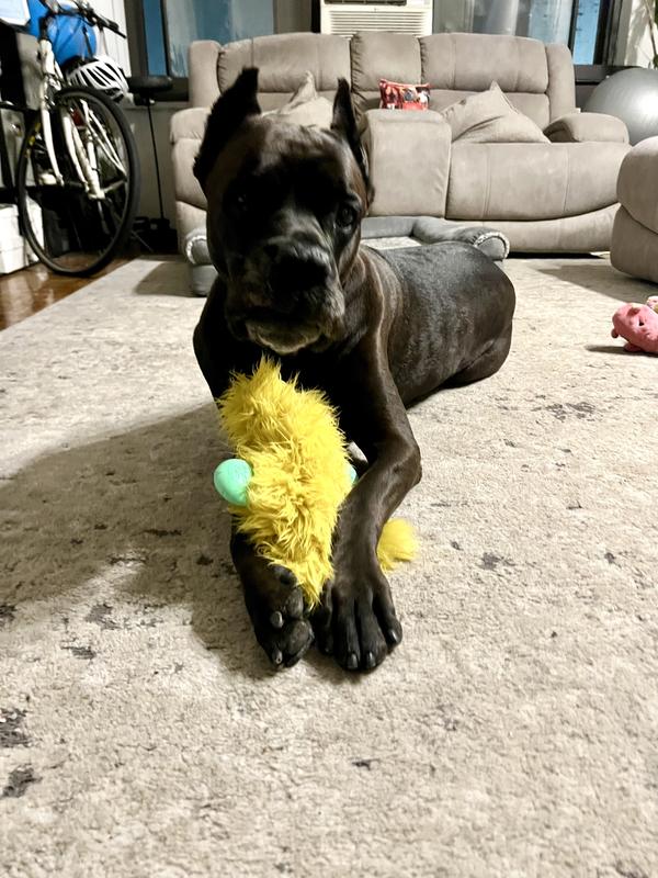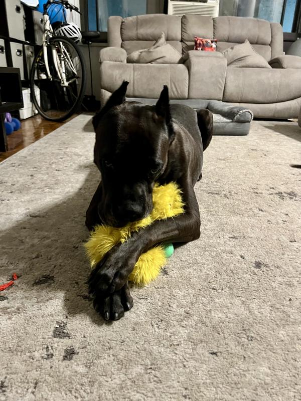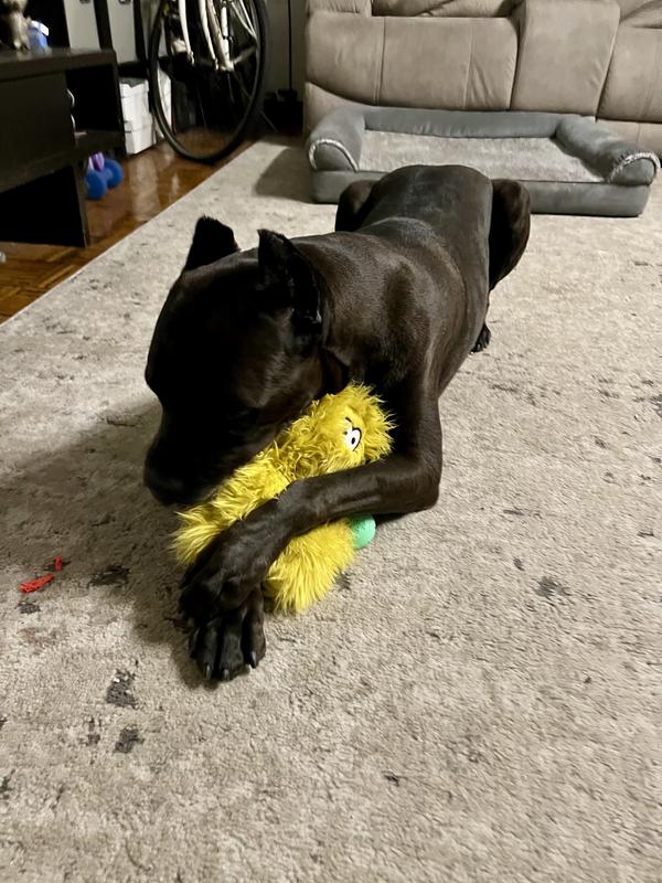 This toy is so durable and soft! My Boston terrier mix always chews holes to get the squeekers and all of the stuffing out within a day or two. She has been unable