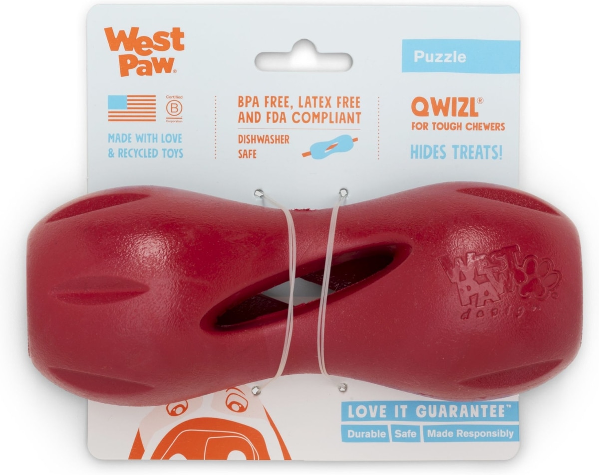 West Paw Qwizl Tough Treat Dispensing Dog Chew Toy, Ruby Red, Large