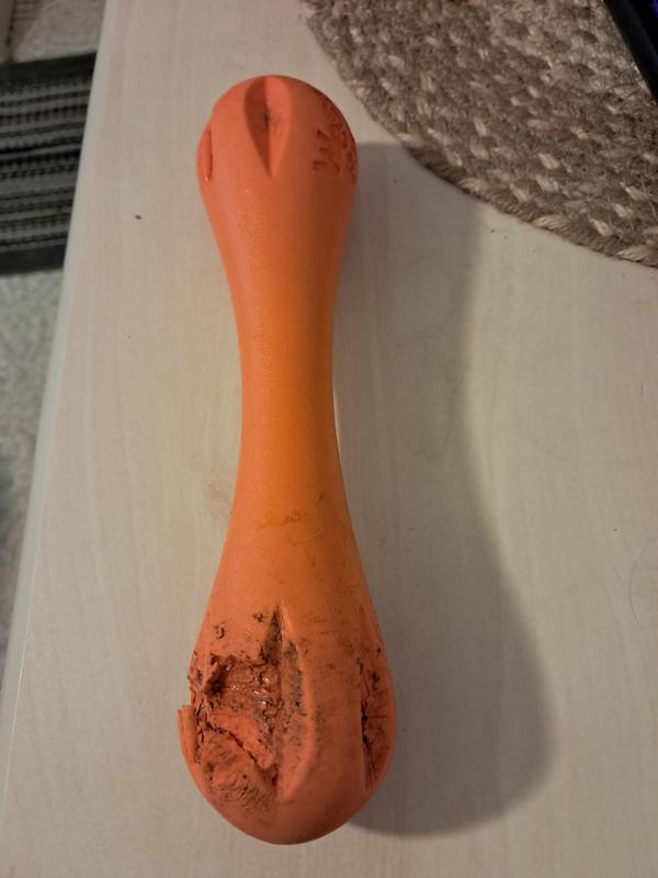 I never thought I would find a chew that my Wirehaired Pointing Griffon could not destroy in minutes! And this West Paw has proved me wrong!! Not even any teeth bites in the toy! SO impressed. Pricey, but worth the money!