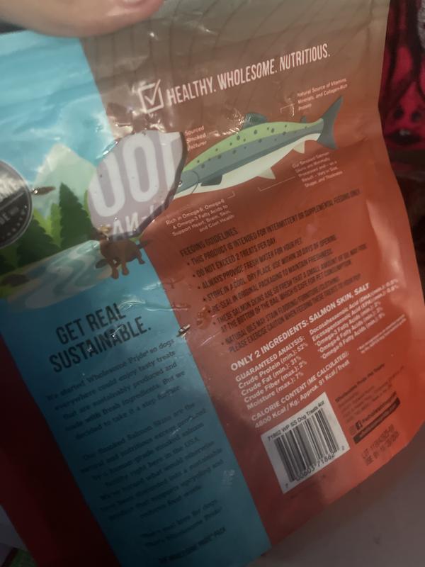 Wholesome Pride Pet Treats Smoked Salmon Skins Grain-Free dehydrated Dog Treats, 4-oz bag