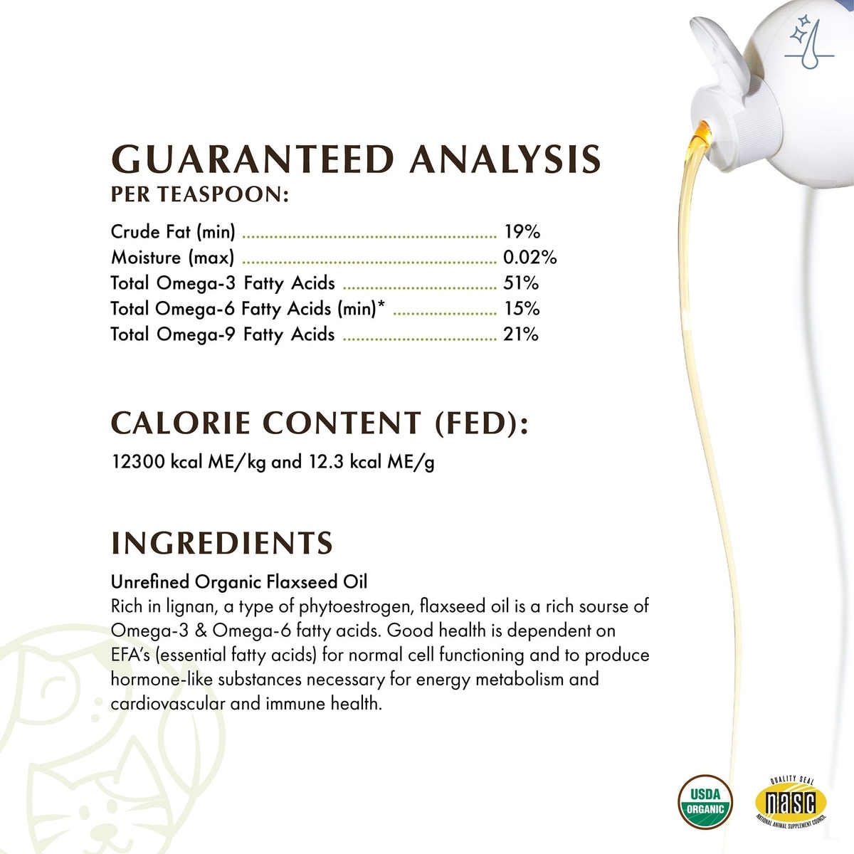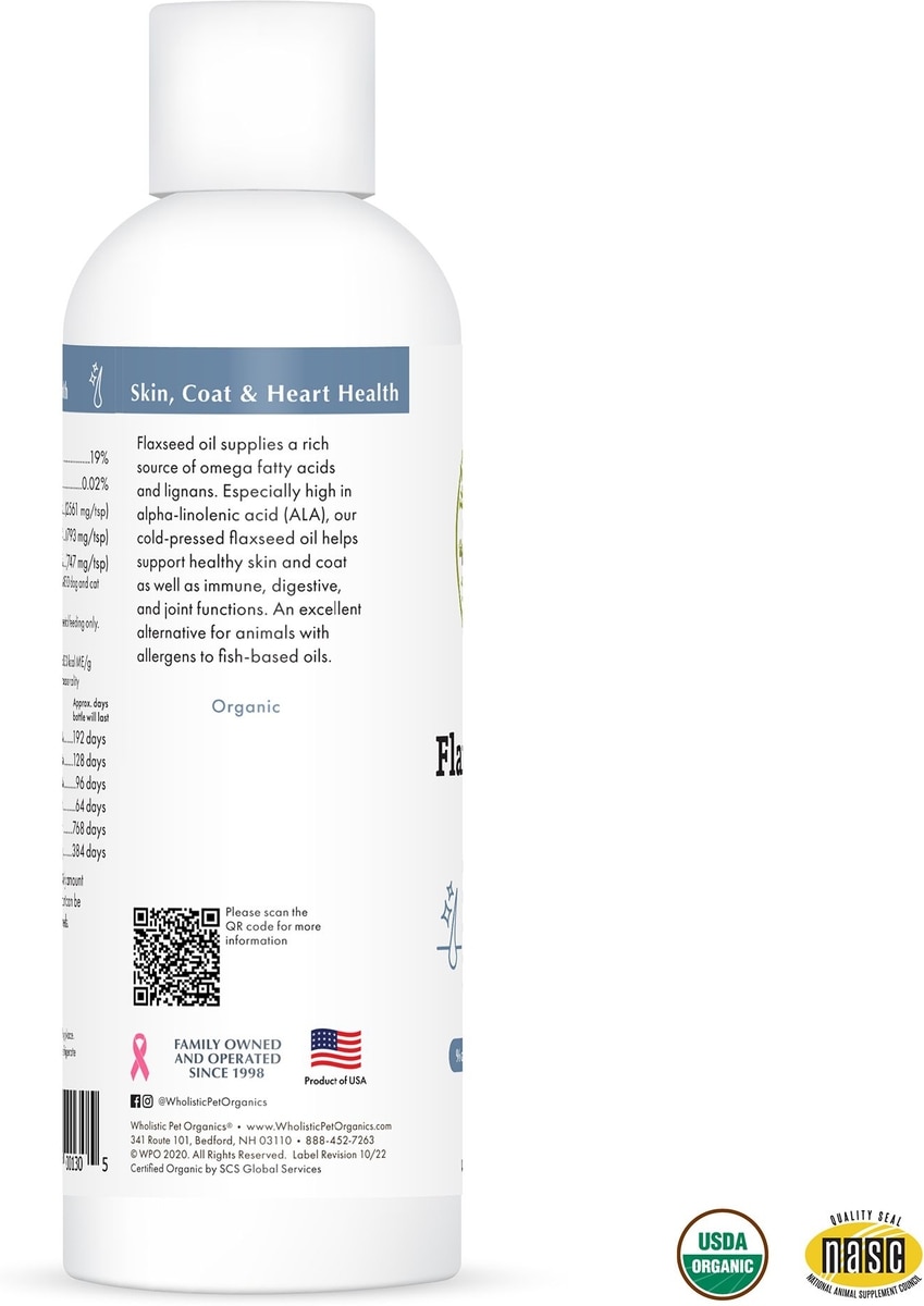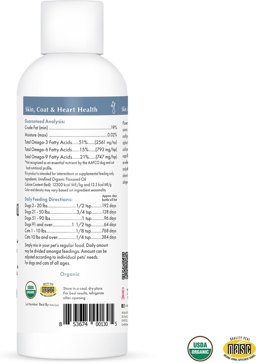 Wholistic Pet Organics Flax Seed Oil Dog & Cat Supplement, 16-fl oz bottle