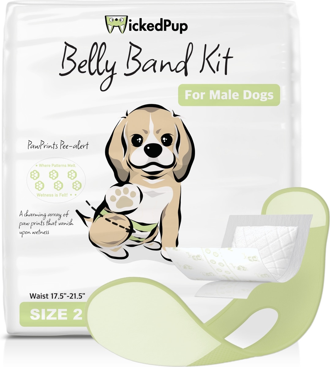 WickedPup Male Belly Band Kit Dog Diaper, Size 2: 17.5 to 21.5-in waist, 50 count