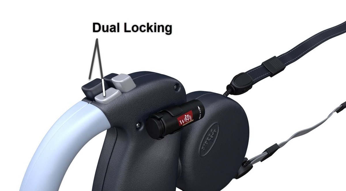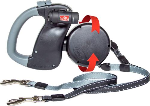- Clever design includes two retractable leashes for superior versatility and control.