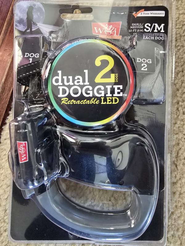 Wigzi LED Dual Retractable Dog Leash, Black, Small