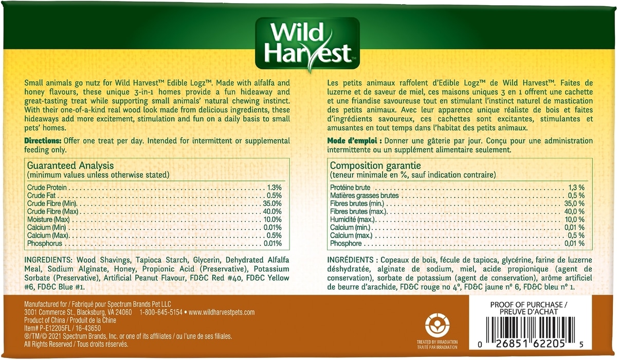 Wild Harvest Edible Logz Natural Small Pet Hideaway