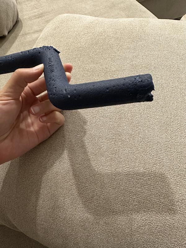 I actually have three of these. Originally I had only two for the two dogs I owned and my pittie mix LOVED chewing on this toy. She would just gnaw all day and while she left teeth marks in it, she never destroyed it. I also put treats in there and it was an added bonus. I did adopt a stray (terrier mix) and she figured out how to chew the ends off like the pictures you see here. Once that was happening, I just sawed the ends off until I was down to the core. (Made the toy considerably smaller, but it works for them still. I purchased a third one and as long as I am watching the little one, they aren't able to chew up the ends and it lasts! They love taking this outside and I don't mind if they do bc it washes off so easily. I did message Wild One. I think if they closed the end off, but left it hollow, it might last longer. TBF, I haven't found a toy that can withstand the super chewers I have in this household. Even when they brag about being indestructible. It is just a reality I live in. :)