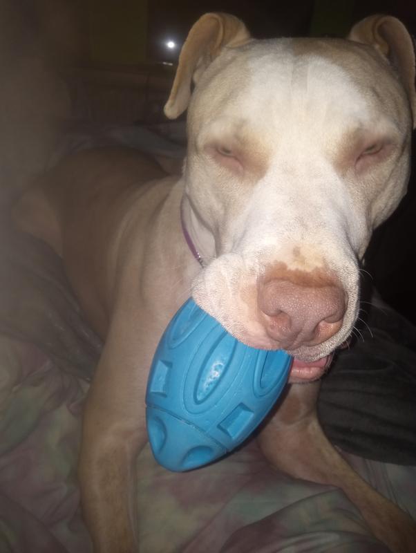 He loves His Chewy box. When he hears the FedEx truck he goes crazy. He's a 2 year old pit who loves to play He's very rambunctious.
