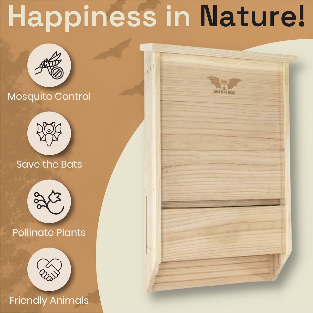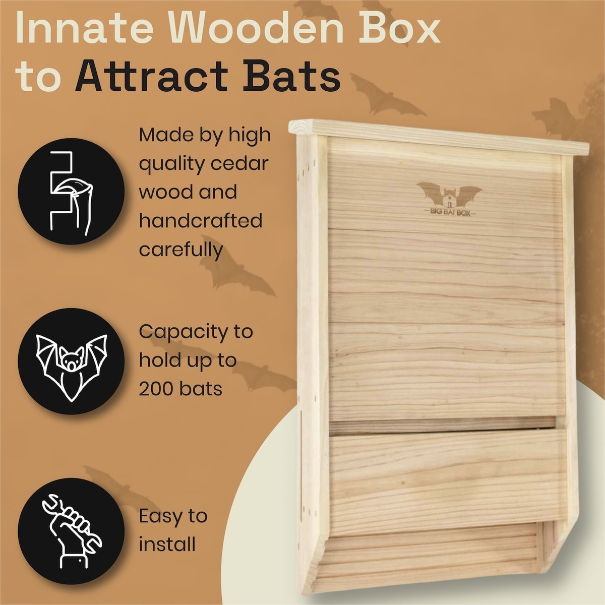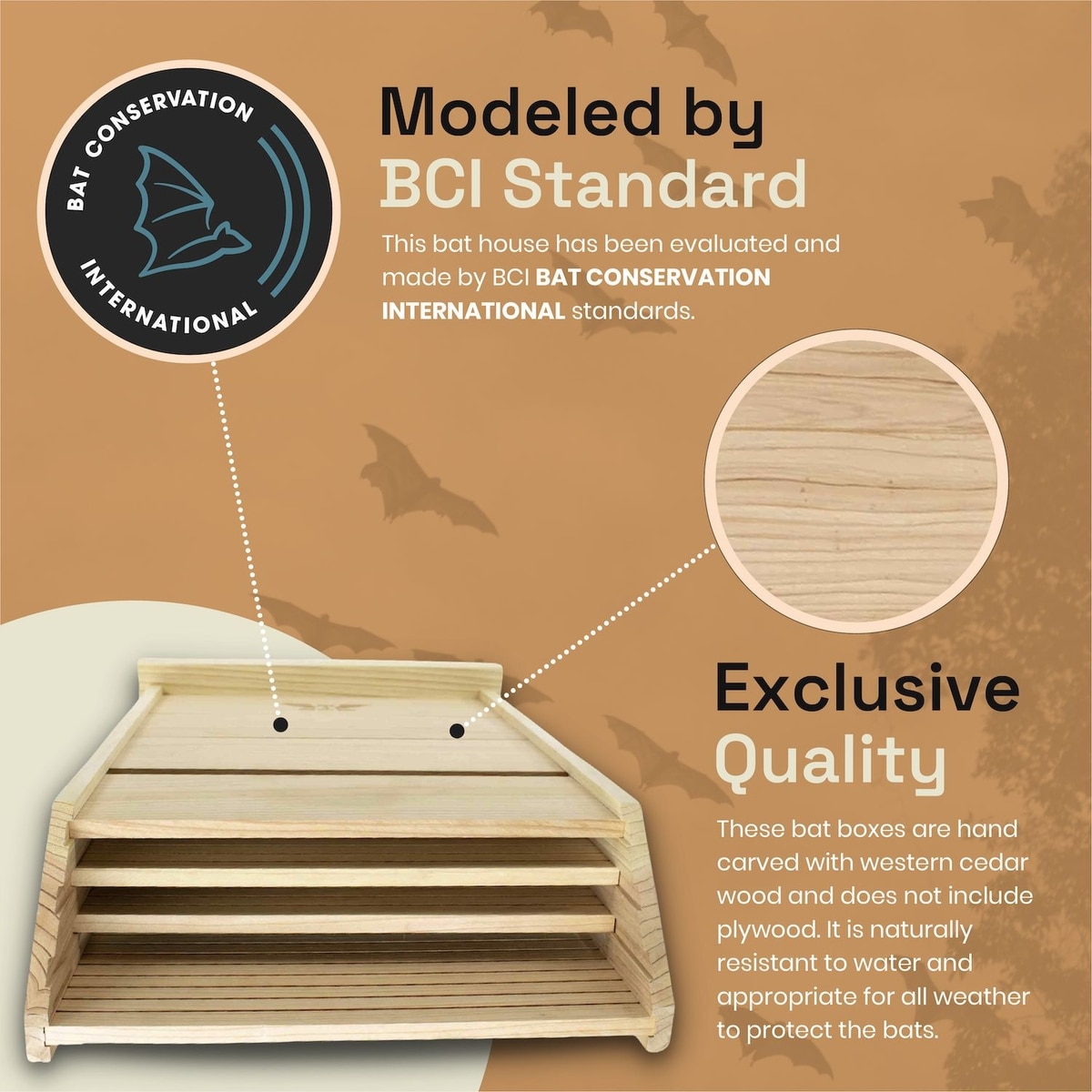 - An eco-friendly solution that encourages bats to roost in an area that benefits the environment and maintains nature’s ecosystem.