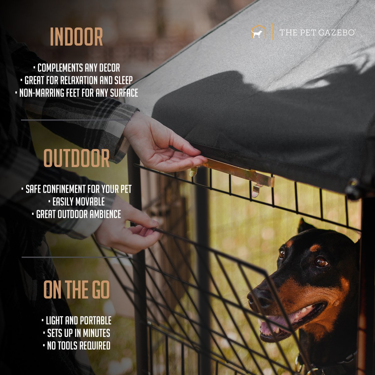 - Take your furbaby’s comfort even further with modular connect-ability that allows for multiple Pet Gazebos (sold separately) to be connected for multiple pals.