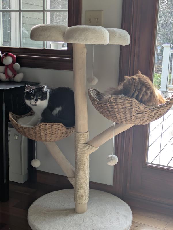 All 3 of our cats love sleeping in the baskets! The scratching post and dangling toys have also been used a ton. It's a beautiful addition to our living room, I