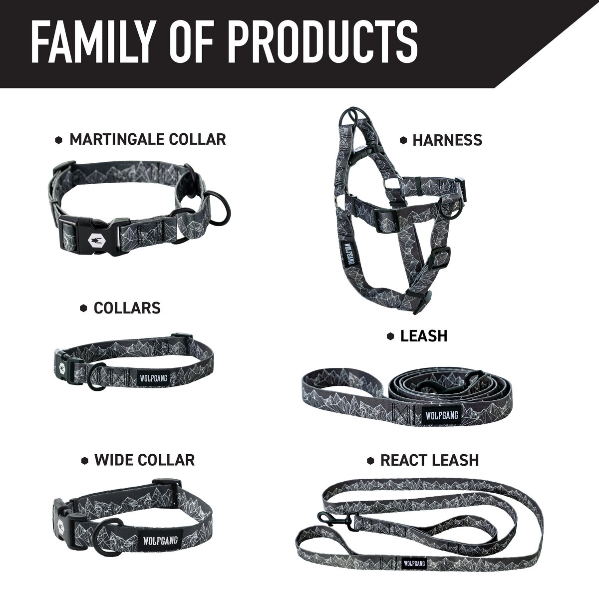 Wolfgang offers adjustable collars, leashes, and harnesses in sizes to suit dogs of all breeds. Each piece is crafted with strong, durable materials like polyester webbing and sturdy nylon buckles, providing a reliable and comfortable fit for daily walks, training, or outdoor adventures.