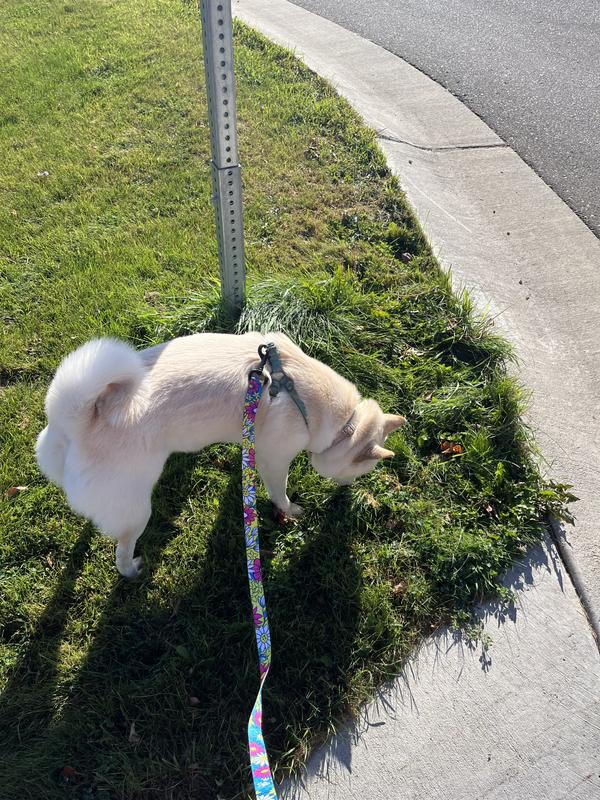 This is a great dog leash. It has a super fun and colorful design on it. It’s comfortable to hold and is a good length. It hooks on and off of my dog’s collar really easily. I’ve used it many times and love it.