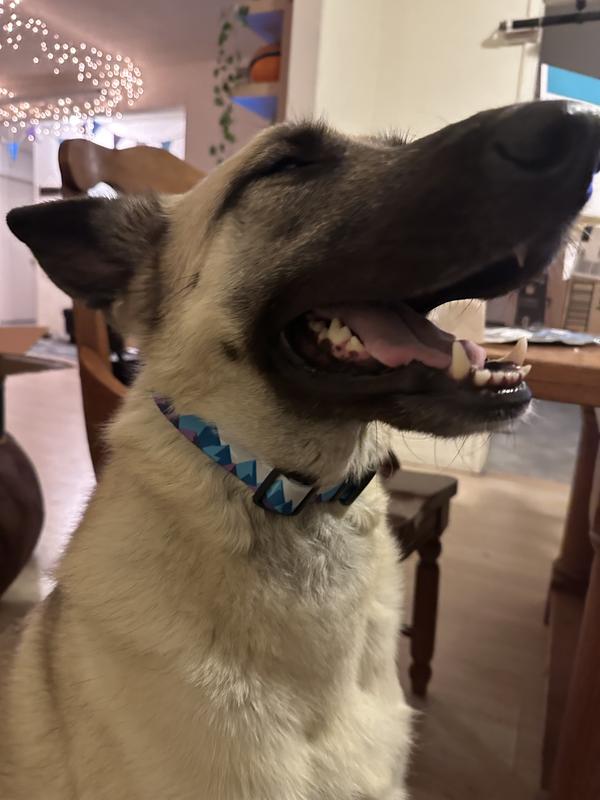 Ozzie was more than ready for a new collar. He couldn't be happier with his new fashion statement. He loves the bight colors and unique design. He loves to show it off!