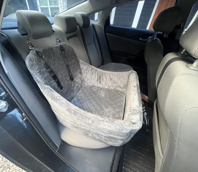 I like the look of this car seat, i like the feel and i love the durability of the back and sides. The things I observed are as follows Pros of this car seat - sides are sturdy - it's very soft and warm - nice size for small body dogs Cons - the tether attachment makes it very hard to attach to the chest of the dog because it attaches to the back seat hanger and not the seat itself - for longer body dog it could feel cramped to the dog