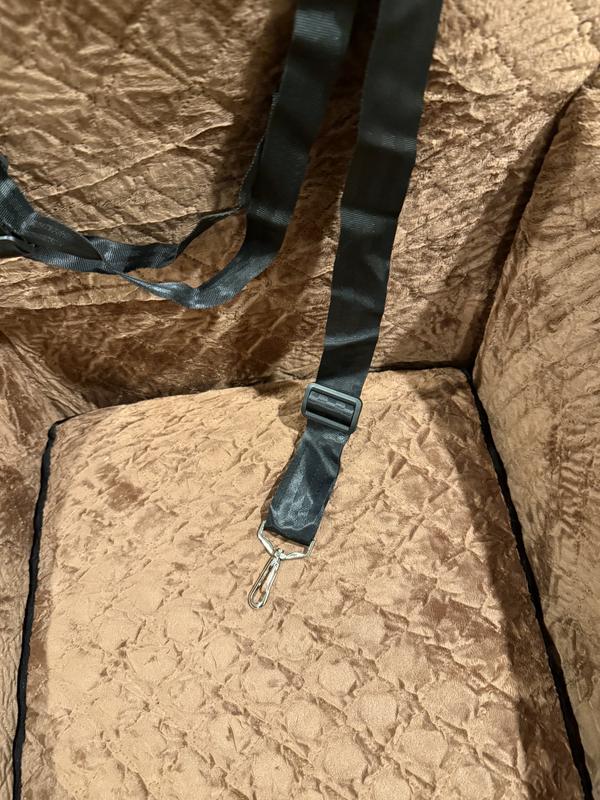 This works perfectly for our frenchie. She loves snuggling up on long drives and we feel safe knowing she’s not being flung all around the car. This isn’t a car seat designed to keep pets safe during a crash, although it may help if they are wearing a harness while hooked up vs a collar, it’s designed more to keep them in place while the vehicle is in motion. Overall, we are happy with our purchase and love the black on brown.