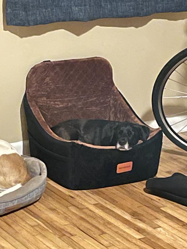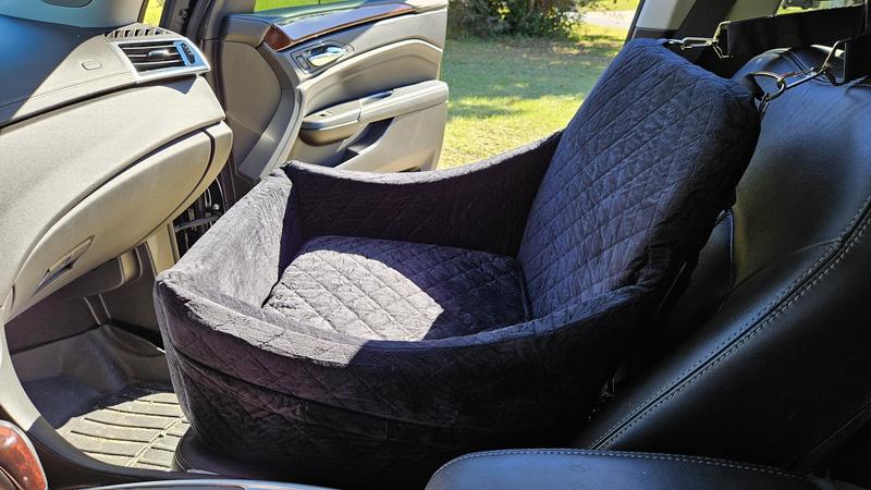 All dogs approve! We were preparing for a long drive (moving out of our house) and were excited to try this dog seat. The night before we left we put it in the house and our shyest dog decided to sleep in it. During our drive, the intended user (25lb “Mando”) loved the cushy seat and booster seat view. He liked being able to curl up like a dog bed and we liked the snap that kept him in the chair! 100% would buy again. All dogs and humans approve.