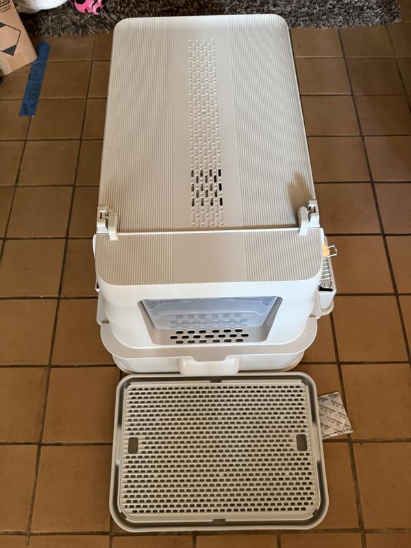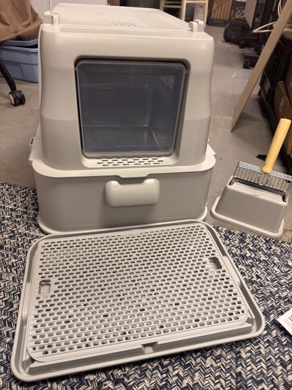 The litter tray for this product can be pulled out completely, without having to remove the top.