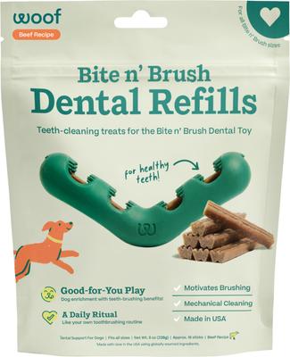 Woof Bite n' Brush Refill Grain-Free Beef Sticks Adult Dental Dog Chew Treats, 8-oz bag