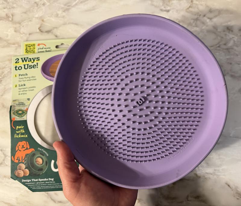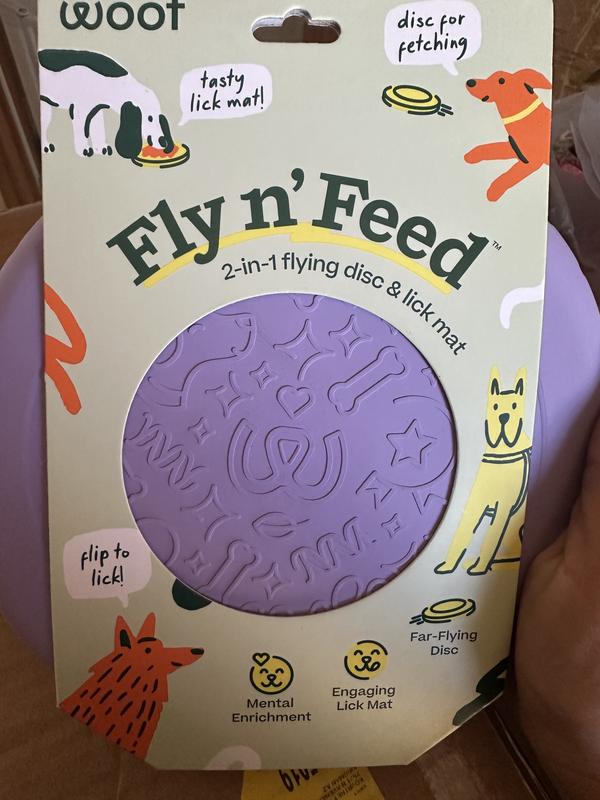 Woof Fly N' Feed Flying Disc Dog Toy & Lick Mat for Enrichment, Lavender