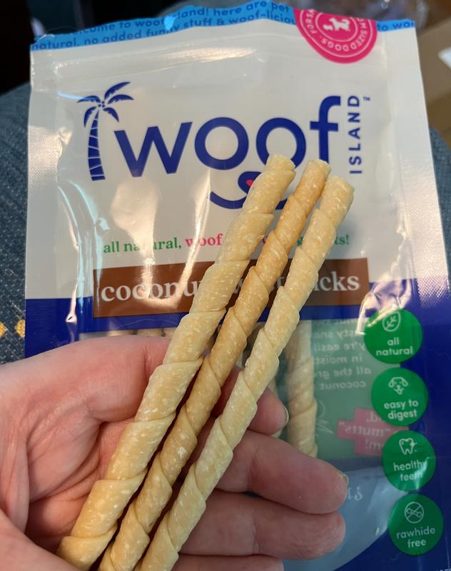 Woof Island Adult Coconut Sticks Natural Dog Chew Treats, 2.6-oz bag, 12 count