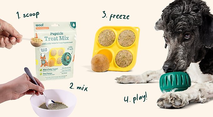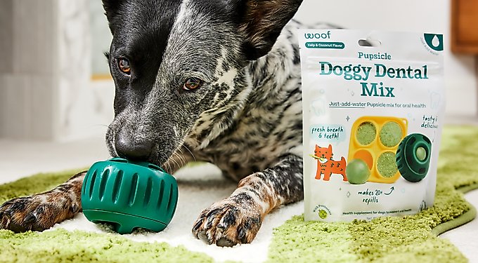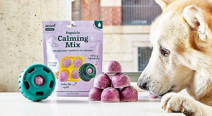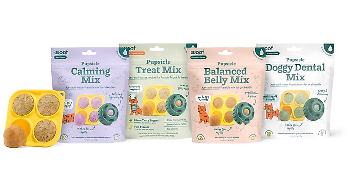 - Woof Pupsicle Mix Calming Lickable Dog Treats, 5.5-oz bag$19.99 Chewy Price$18.99 Autoship PricePromo, New Customers Only: Spend $49+, Get $20 eGift Card