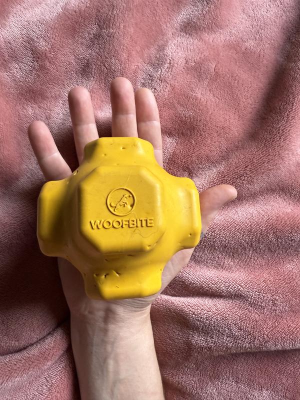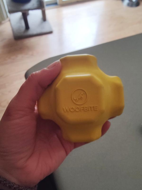 - The unique, engaging natural rubber and bright yellow color—highly visible to dogs—make WoofBite toys irresistible to dogs.