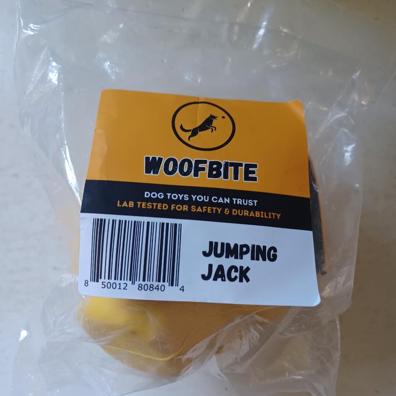 This Woofbite Jumping Jack chew toy is virtually indestructible! It is made of durable rubber and is actually quite heavy, so be careful when playing indoors. Because