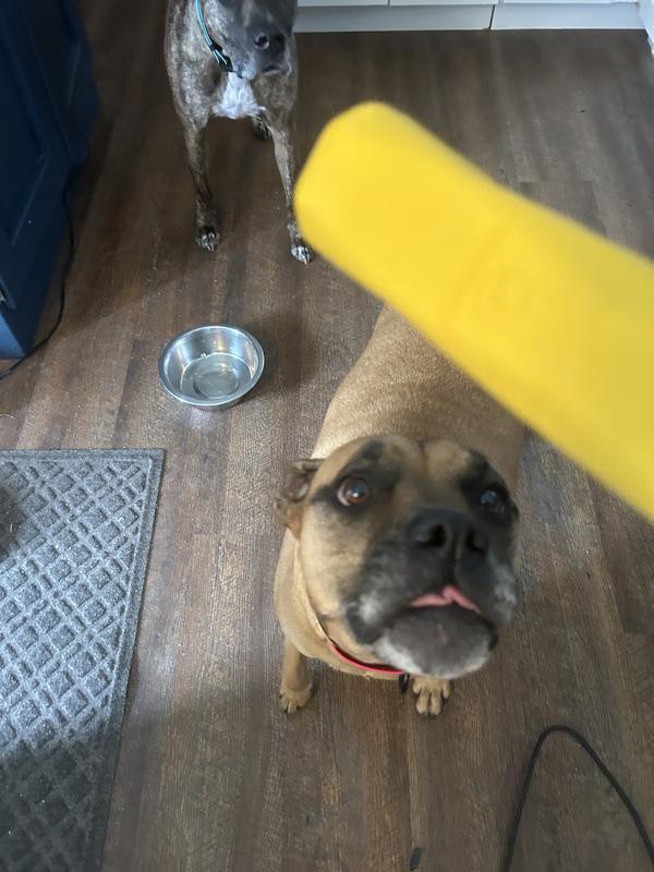 A big hit! The dogs loved this new chew toy. The WoofBite Power Stick chew toy is incredibly durable, and shows very little signs of wear and tear after two weeks. I'm likely to purchase another!