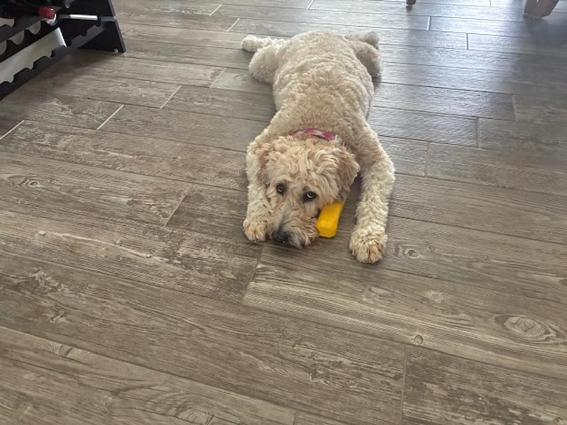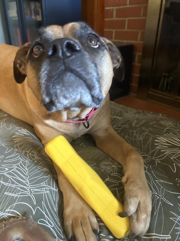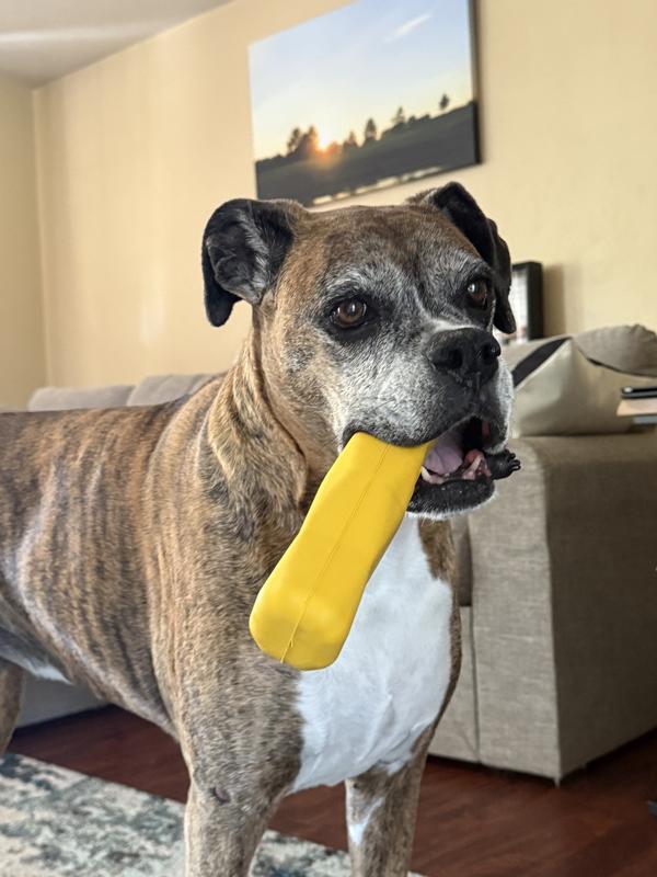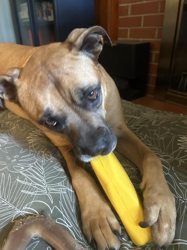 Margarine lovesssss this toy that we have loving named her french fry. She will sit on the couch for days and just chew away. It is a nice strong rubber that she